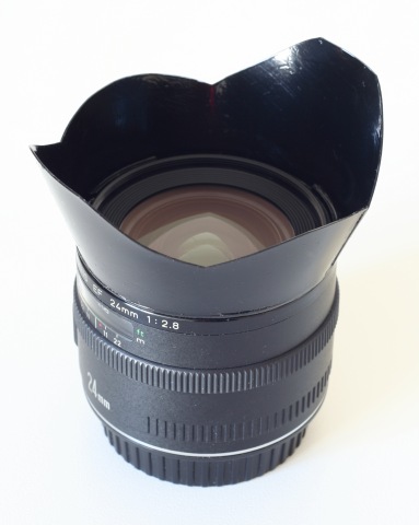 The pattern for the hood was downloaded from www.lenshoods.co.uk. I actually used the pattern for the 50mm f/1.8. On my 1.6x crop camera, the 24mm lens is the equivalent of a 38mm on a full-frame camera. Obviously that's still a fair bit wider than 50mm, but I found the 50mm hood template didn't cause any vignetting.
