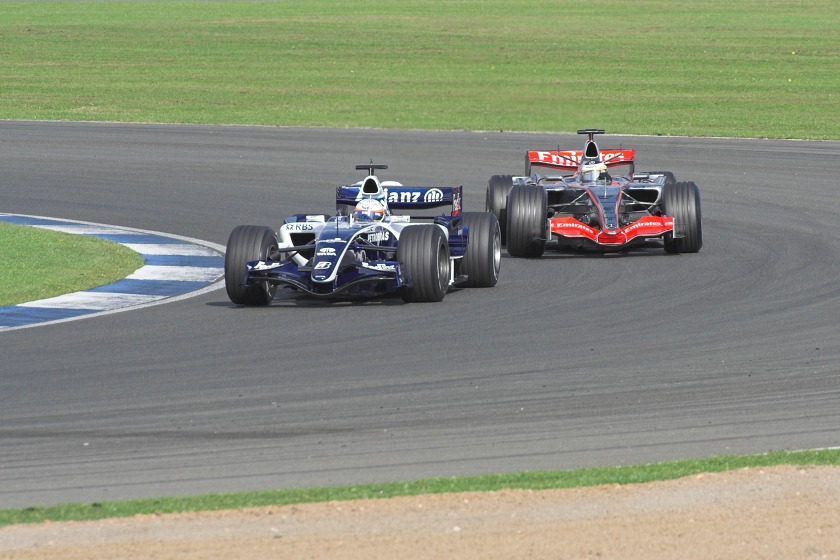 Narain Karthikeyan (Williams-Cosworth) and Pedro de la Rosa (McLaren-Mercedes)