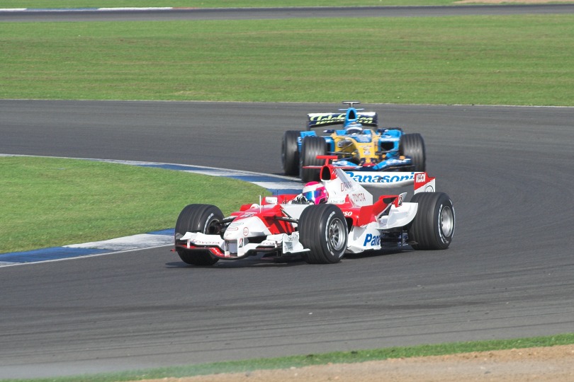 Franck Montagny (Toyota) and Nelson Piquet Jr (Renault)