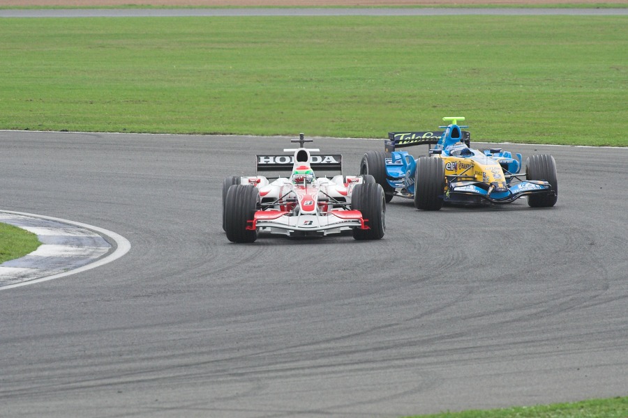 Sakon Yamamoto (Super Aguri-Honda) and Heikki Kovalainen (Renault)