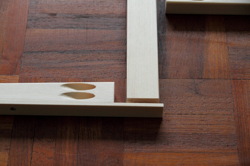 The frame is made from 1"x1½" planed square edged spruce with a finished cross section of 21x34mm. If I were doing this again I would use 1"x2" stock (finished width about 45mm) for extra rigidity. The 1x1½ is quite strong enough, but is a little more flexible than I would like. You want nice straight-grained stock.